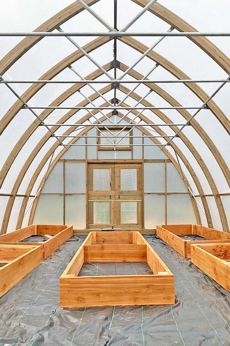 Our greenhouses are made to order using locally sourced western red cedar and B.C. douglas fir. Designed to withstand the elements, our hybrid Gothic arch construction compliments all architectural styles, from Farmhouse to Modern.